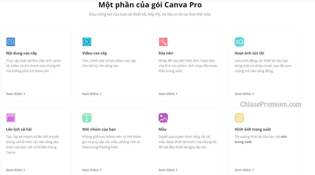 - Ngoài gói trải nghiệm 1 tháng, thi thoảng blog Chiasepremium cũng có chia sẻ tài khoản Canva Pro từ 3-6-9 tháng sử dụng. Các bạn cập nhật thông tin chia sẻ trên Group hoặc tại Fanpage nhé.
